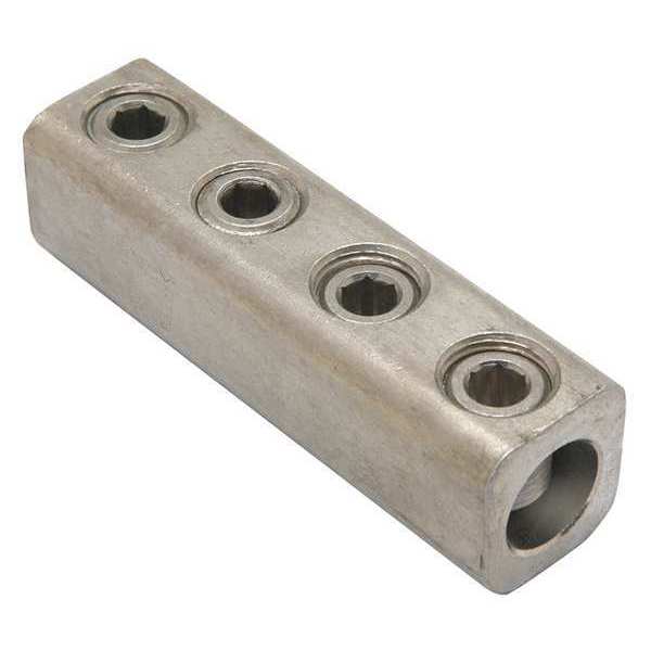 SKU G4663635CategoriesDescription Mechanical Connector, For Conductor Material Aluminum, Copper, For Stranded Copper Wire Size - Minimum 6 AWG, For Stranded Copper Wire Size - Maximum 250 kcmil, For Stud Size 1/2 in, Head Style Hex, Number of Holes 4, Hole Diameter 0.56 in, Hole Spacing 1.75 in, Body Material Aluminum, Maximum Operating Temperature 194 Degrees F, Maximum Voltage 600 V, Number of Conductors 4, Number of Terminations 4, Tongue Length 3.16 in, Tongue Width 3.69 in, Tongue Thickness 0.31 in, Connector Type TerminalgraingerSKU: , mscSKU: , zoro_no: G4663635, mongo_id: 65bbe61c3aaddbd5a900a8bb