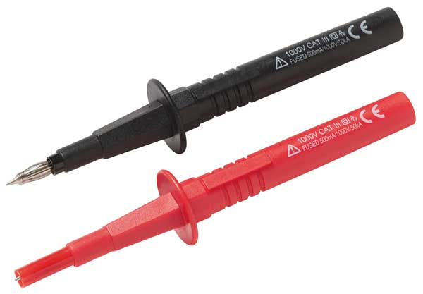 Fused Test Probes, 7In. L, Blk/Red, 1000VAC