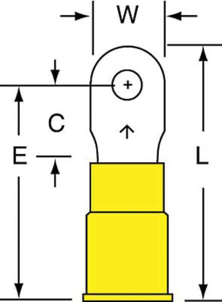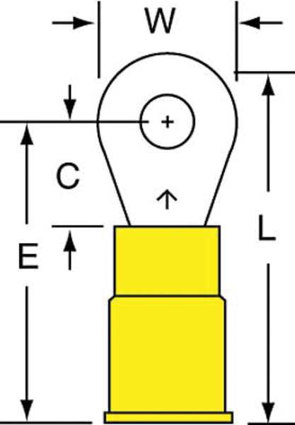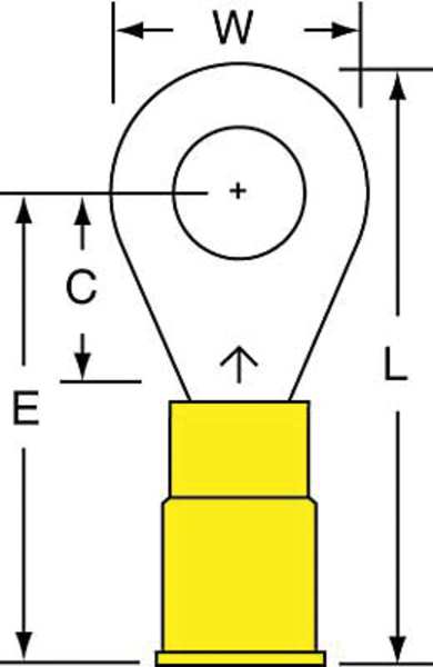 SKU G5806963CategoriesDescription Ring Terminal, Insulation Color Yellow, Insulation Coverage Partial Coverage, Insulation Material Nylon, Maximum Operating Temperature 221 Degrees F, Maximum Voltage 1,000 V, Minimum Wire Size 12 AWG, Maximum Wire Size 10 AWG, Termination Style Crimp, Tongue Width 0.38 in, Contact Finish Tin, Contact Material Copper, Standards CSA Certified, UL Listed, Barrel Inside Diameter 0.14 in, Barrel Length 0.25 in, Barrel Style ButtedgraingerSKU: 2JLU8, mscSKU: , zoro_no: G5806963, mongo_id: 65bbe70b3aaddbd5a906ec81