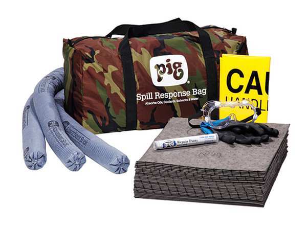 $226.25 / eachWeb pricePIG Spill Kit, Universal, CamouflageSKU G8258135CategoriesDescription Spill Kit, Fluids Absorbed Universal, Volume Absorbed Per Kit 9 gal, Container Type Portable Bag, 12 in W x 24 in L x 12 in H Container Size, Camo, Filled, Sorbents Included (3) 3 in D x 48 in L Sock, (30) 15 in W x 20 in L Mat Pad, PPE Included Economy Goggle, Neoprene Glove, Additional Components Included (5) 18 in W x 30 in H Polyethylene Disposal Bags, 7 in L Pig(TM) Multi-Purpose Epoxy Putty, Duffel Bag, Instructions, Lockable No, Static Dissipative No, UV Resistant No, Product Weight 11 lbgraingerSKU: 30RD74, mscSKU: , zoro_no: G8258135, mongo_id: 65bbe9c522d7a989a99773a8