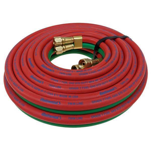 SKU G600720725CategoriesDescription Twin Line Welding Hose, Hose Inside Dia. 1/4 in, Hose Outside Dia. 1/2 in, Hose Length 25 ft, Hose Color Green, Red, Hose Tube Material Synthetic Rubber, Hose Cover Material Nitrile, Hose Reinforcement Type Spiral, Hose Reinforcement Material Fiber, Burst Pressure 800 psi, Max. Working Pressure @ 70 F 200 psi, Temp. Range -40 Degrees to 120 Degrees F, Standards ARPM IP-7, CGA E-1, Safety Factor 4:1, Hose Configuration Coupled Assembly, Hose Grade T, Hose Fitting A Material BrassgraingerSKU: 61DV66, mscSKU: , zoro_no: G600720725, mongo_id: 65bbe7a23aaddbd5a90a881d