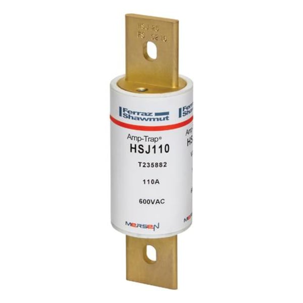 Description Fuse, 110 A, 600V AC, 300V DC, Class T, A6T Series, Nonindicating, Very Fast Acting, Body Style Blade, Nonrejection, Interrupt Rating 100kA at 300V DC, 200kA at 600V AC, Fuse Size 3-1/4 in L x 1-1/16 in dia, Length 3 1/4 in, Diameter 1 1/16 in, Equivalent Brand and Series Bussmann JJS, Littelfuse JLLS, Mersen A6T, Equivalent Series A6T, JJS, JLLS, Compatible Fuse Block Series 6TFB, GFB, Body Material Glass/Melamine, Single Element, Standards UL/CSA
