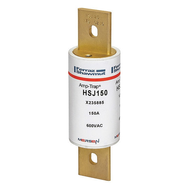 Description Fuse, 150 A, 600V AC, 500V DC, Class J, HSJ Series, Nonindicating, Very Fast Acting, Body Style Blade, Rejection, Interrupt Rating 100kA at 500V DC, 200kA at 600V AC, Fuse Size 5-3/4 in L x 1-5/8 in dia, Length 5 3/4 in, Width Not Applicable, Depth Not Applicable, Diameter 1 5/8 in, Equivalent Brand and Series Bussmann DFJ, Littelfuse LDFJ, Mersen HSJ, Equivalent Series DFJ, HSJ, LDFJ, Compatible Fuse Block Series JFB, SJ, Body Material GMG, Single Element
