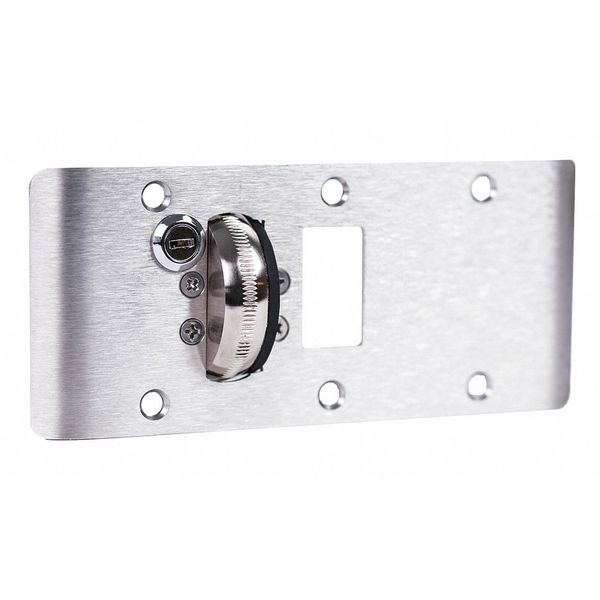 Description Emergency Stop Strike, Strike Type Universal, Length 6 1/4 in, Width 2 in, Color Silver, Satin Chrome Finish, Material Steel, Hardware Not Included, Standards ANSI/BHMA A1882, ADA Compliant Yes