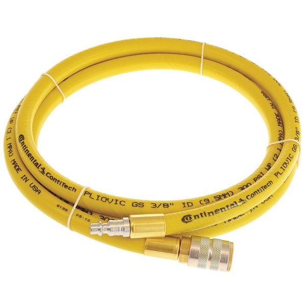 SKU G4282739CategoriesDescription Air Hose, Hose Inside Dia. 1/4 in, Hose Outside Dia. 7/16 in, Hose Length 15 ft, Hose Color Yellow, Hose Tube Material PVC, Hose Cover Material PVC, Burst Pressure 1,200 psi, Max. Working Pressure @ 70 F 300 psi, Temp. Range -10 Degrees to 158 Degrees F, Hose Reinforcement Type Spiral, Hose Reinforcement Material Polyethylene, Safety Factor 4:1, Hose Fitting A Material Brass, Hose Fitting B Material Brass, Hose Fitting A Type FNPT, Hose Fitting B Type MNPT, Hose Fitting A Size 1/4 ingraingerSKU: 50JH89, mscSKU: , zoro_no: G4282739, mongo_id: 65bbe86b22d7a989a98f3f97