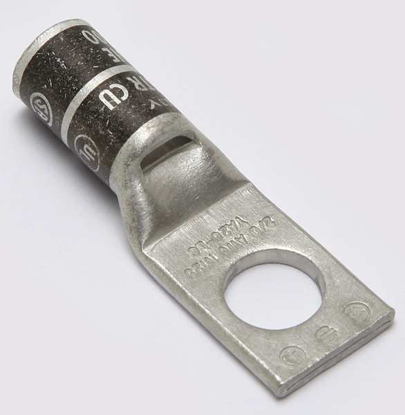 Description Ring Terminal, Insulation Color Bare, Insulation Coverage None, Insulation Material None, Maximum Operating Temperature 302 Degrees F, Maximum Voltage 600 V, Minimum Wire Size 1/0 AWG, Maximum Wire Size 1/0 AWG, Termination Style Crimp, Tongue Width 0.71 in, Contact Finish Tin, Contact Material Copper, Standards UL 467, Barrel Length 0.63 in, Barrel Outside Diameter 0.57 in, Barrel Size Long, Barrel Style Brazed, Compatible Grainger Part Number 22P219, 22P221