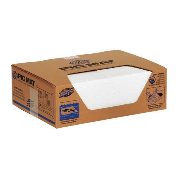 Sorbents, 11 gal/pk, 28 oz/pad, Oil Absorbed, White, Polypropylene, 50 PK