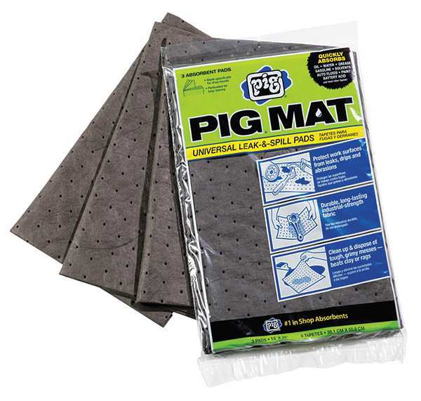 SKU G9052565CategoriesDescription Product Type Sorbent Pad, Fluids Absorbed Universal, For Use With Chemical or Metal Type Universal, Size 15 in x 20 in, Volume Absorbed Per Pad 14.08 oz, Volume Absorbed per Pkg. 42.24 oz, Volume Absorbed Per Pound 0.7275 gal, Color/Pattern Gray, Material Polypropylene, Number of Layers 8-ply, Perforated Yes, Perforated Size 10 inx15 in, Package Quantity 3graingerSKU: 30PV74, mscSKU: , zoro_no: G9052565, mongo_id: 65bbe92f22d7a989a993dac0
