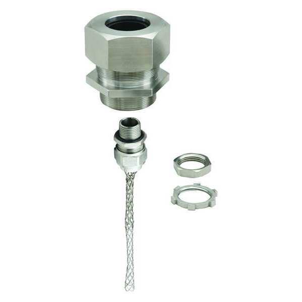 Description Liquid Tight Cord Connector with Strain Relief, Cord Dia. Range 0.87 in to 1.00 in, Box Connection 1 in MNPT, Material - Cord Connector 304 Stainless Steel, External Strain Relief Material Stainless Steel, Gland Color Code No Code, Body Color - Cord Connector Silver, Number of Cords 1, Style - Connector Straight, Strain Relief Type Mesh, External Strain Relief Length 14 1/2 in, Length - Box to End of Connector 1 7/16 in, Insulated No, Standards CSA, NEMA 4X, UL 514D