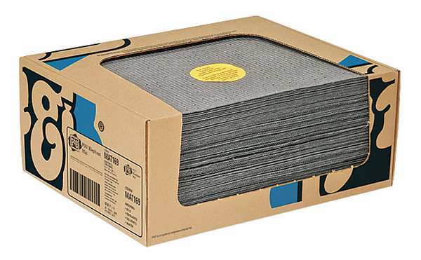 SKU G8271663CategoriesDescription Product Type Sorbent Pad, Fluids Absorbed Universal, For Use With Chemical or Metal Type Universal, Size 16 1/2 in x 20 in, Volume Absorbed Per Pad 16.12 oz, Volume Absorbed per Pkg. 12 gal, Color/Pattern Gray, Material Polyester, Polypropylene, Number of Layers 8-ply, Perforated No, Perforated Size Not Perforated, Package Quantity 100graingerSKU: 30PZ49, mscSKU: , zoro_no: G8271663, mongo_id: 65bbea1022d7a989a9993d1c