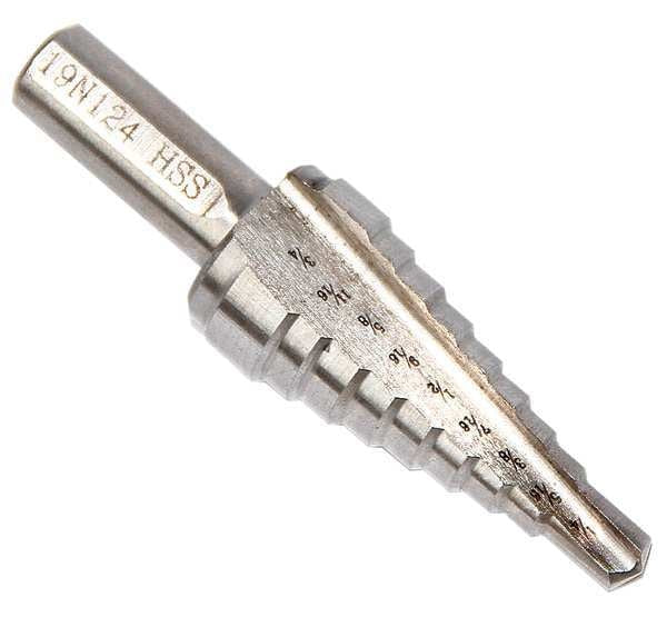 $43.75 / eachWeb priceHSS Step Drill Bit 9 Sizes, 1/4-3/4"SKU G4924001CategoriesDescription Step Drill Bit, High Speed Steel, Bright (Uncoated), 1/4 in to 3/4 in Size Range, Hex, 3/8 in Shank Diameter, 2 3/4 in Overall Length, Maximum Drilling Depth 2 3/4 ingraingerSKU: 19N124, mscSKU: , zoro_no: G4924001, mongo_id: 65bbea1022d7a989a99935fe