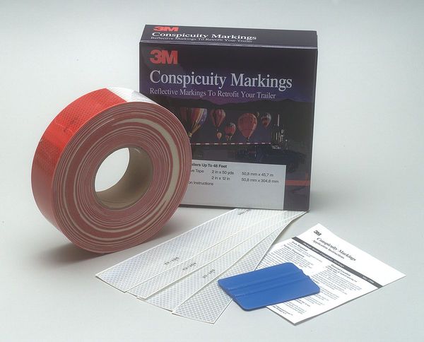 Description Premium Grade Conspicuity Kit, Reflective Color Red, White, Width 2 in, Length 50 yd, Adhesive Material Acrylic, Backing Material Retroreflective Microprismatic Material, Thickness 18 mil, Outdoor