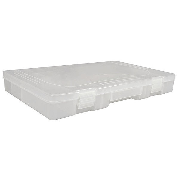 SKU G0388911CategoriesDescription Tool Case, Material Plastic, Overall Depth 8 3/4 in, Overall Height 1 3/4 in, Overall Width 14 in, Locking System None, Color Clear, Includes Drawers No, Number of Compartments 28, Body Finish Unfinished, Body Gauge 1 mm, Closure Type Clasp, Configuration Individual Tool Box, Features 28 Adjustable Slots, Includes Casters No, Includes Keys No, Lid Style Hinged, Number of Boxes 1, Number of Dividers 0, Number of Drawers 0, Number of Handles 0, Number of Keys Included 0, Number of Trays 0graingerSKU: 5MZJ0, mscSKU: , zoro_no: G0388911, mongo_id: 65bbe8fd22d7a989a992a419