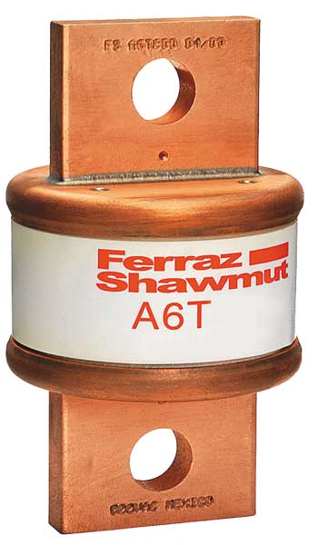 SKU G2135043CategoriesDescription Fuse, 800 A, 600V AC, 300V DC, Class T, A6T Series, Nonindicating, Very Fast Acting, Body Style Blade, Nonrejection, Interrupt Rating 100kA at 300V DC, 200kA at 600V AC, Fuse Size 4-5/16 in L x 2-1/2 in dia, Length 4 5/16 in, Diameter 2 1/2 in, Equivalent Brand and Series Bussmann JJS, Littelfuse JLLS, Mersen A6T, Equivalent Series A6T, JJS, JLLS, Compatible Fuse Block Series 6TFB, GFB, Body Material Glass/Melamine, Single Element, Standards UL/CSAgraingerSKU: 4ZAH4, mscSKU: , zoro_no: G2135043, mongo_id: 65bbe7da9a749db82275e7cf