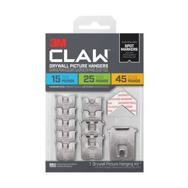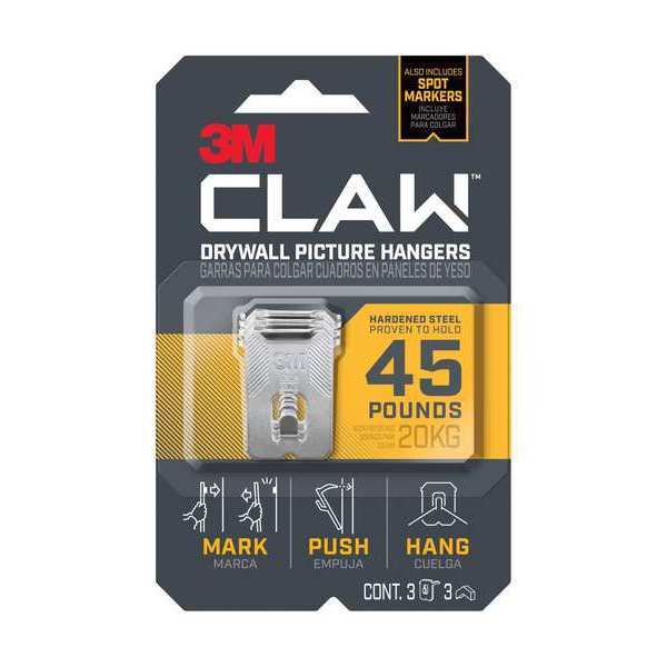 Description Picture Hanger, Fastening Method Push In, Points per Hook 1, Number of Hooks 3, Basic Hook Material Steel, Hook Finish Unfinished, Working Load Limit 45 lb, Hook Height 1 5/8 in, Hook Base Width 1 1/8 in, Projection 1/8 in, Includes 3 Hangers, 3 Spot Markers, Hardware Not Included, Mounting Wall, Package Quantity 3