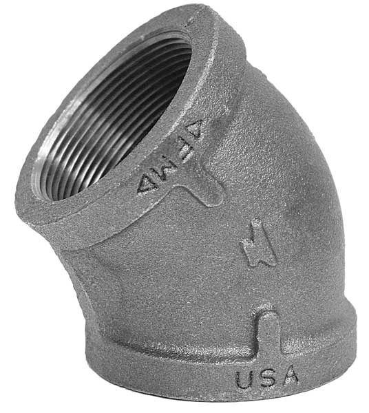 SKU G2372194CategoriesDescription 45 Degrees Elbow, Malleable Iron, Class Class 150, For Pipe Schedule 40, 2 1/2 in, Female, NPT, 2 1/2 in, Female, NPT, 300 psi @ 150 Degrees F Maximum Operating PressuregraingerSKU: 4WGY2, mscSKU: , zoro_no: G2372194, mongo_id: 65bbe98022d7a989a995d1e3