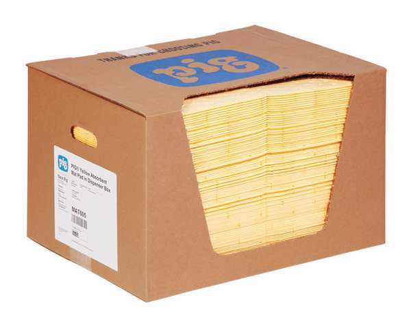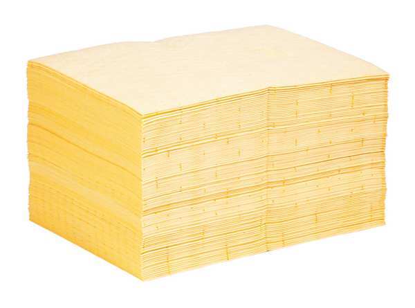 SKU G7827005CategoriesDescription Product Type Sorbent Pad, Fluids Absorbed Universal, For Use With Chemical or Metal Type Universal, Size 15 in x 20 in, Volume Absorbed Per Pad 28 oz, Volume Absorbed per Pkg. 22 gal, Color/Pattern Yellow, Material Polypropylene, Number of Layers 8-ply, Perforated Yes, Perforated Size 10 in x 15 in, Package Quantity 100graingerSKU: , mscSKU: , zoro_no: G7827005, mongo_id: 65bbe6203aaddbd5a900c76f