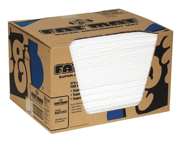 SKU G8469806CategoriesDescription Product Type Sorbent Pad, Fluids Absorbed Oil-Only, For Use With Chemical or Metal Type Oil Only, Size 16 in x 20 in, Volume Absorbed Per Pad 56 oz, Volume Absorbed per Pkg. 22 gal, Color/Pattern White, Material Polypropylene, Number of Layers 16-ply, Perforated Yes, Perforated Size 8 in x 20 in, Package Quantity 50graingerSKU: 30RA10, mscSKU: 19826635, zoro_no: G8469806, mongo_id: 65bbe81a9a749db82277564b