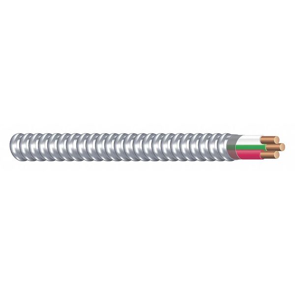 Metal Clad Armored Cable, 12 AWG, 250 ft, 2 Conductors, Solid Design, Aluminum Jacket, Silver