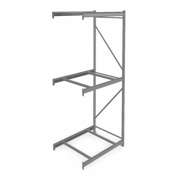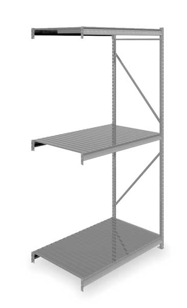 SKU G1790677CategoriesDescription Bulk Storage Rack, Shelving Type Add-On, Overall Width 48 in, Overall Depth 36 in, Overall Height 120 in, Decking Material Steel, No. of Shelves 3, Shelf Capacity 4150 lb, Load Capacity 12,450 lb, Shelving Frame Material Steel, Gray, Finish - Shelving and Racks Powder Coated, Shelf Adjustments 2 in, Shelving Gauge 22, For Use With Tennesco Bulk Storage and Boltless Racks, Includes (3) Shelves, End FramegraingerSKU: 7B142, mscSKU: , zoro_no: G1790677, mongo_id: 65bbe98022d7a989a995cd95