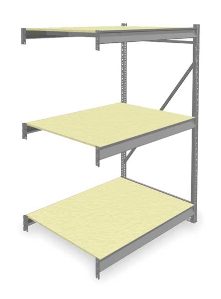 $737.49 / eachWeb priceAdd-On Bulk Storage Rack, 36 in D, 60 in W, 3 ShelvesSKU G1057743CategoriesDescription Bulk Storage Rack, Shelving Type Add-On, Overall Width 60 in, Overall Depth 36 in, Overall Height 120 in, Decking Material Particleboard, No. of Shelves 3, Shelf Capacity 3800 lb, Load Capacity 11,400 lb, Shelving Frame Material Steel, Gray, Finish - Shelving and Racks Powder Coated, Shelf Adjustments 2 in, For Use With Tennesco Bulk Storage and Boltless Racks, Includes (3) Shelves, End FramegraingerSKU: 7B142, mscSKU: , zoro_no: G1057743, mongo_id: 65bbe6af3aaddbd5a9048229