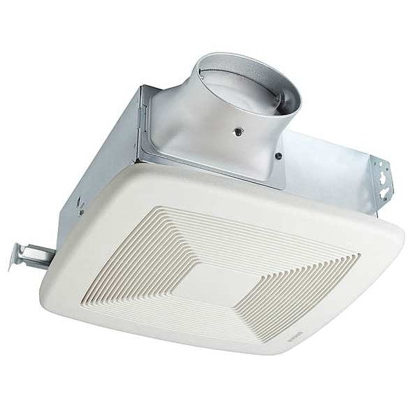 • Ceiling Bathroom Fan, 100 cfm cfm, 4 in Duct Dia., 120V AC, Yes