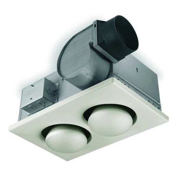 Description Bathroom Fan, Discharge Direction Horizontal, Duct Diameter 4 in, Duct Shape Round, Housing Material Steel, Heater With Heater, Heater Type Infrared Lamp, Heater Wattage 500 W, Includes Adjustable Mounting Brackets, Quiet Plastic Damper, Squirrel Cage Plastic Blower Wheel, Mounting Location Ceiling, Exhaust Airflow @ 0.100 in SP 70 cfm, Maximum Noise Level 4 sones, Noise Level @ 0.100 in SP @ 5 ft 4 sones, Maximum Coverage Area 65 sq ft, Number of Speeds 1, Overall Depth 14 1/4 in