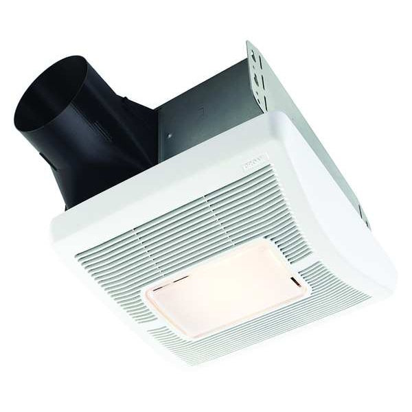 • Ceiling Bathroom Fan, 70 cfm cfm, 4 in Duct Dia., 120V AC, No