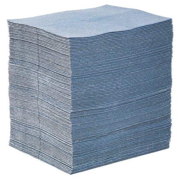 Description Product Type Sorbent Pad, Fluids Absorbed Universal, For Use With Chemical or Metal Type Universal, Size 15 in x 19 in, Volume Absorbed Per Pad 30 oz, Volume Absorbed per Pkg. 24 gal, Volume Absorbed Per Pound 52 gal, Color/Pattern Blue, Material Fibers, Perforated Yes, Perforated Size 7 1/2 in x 19 in, Package Quantity 100