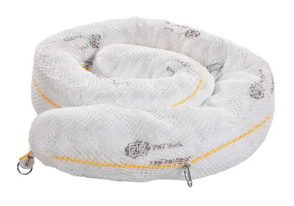 Description Product Type Sorbent Boom, Fluids Absorbed Oil Based Liquids, For Use With Chemical or Metal Type Fuels, Oil-Based Liquids, Oils, Size 5 in x 20 ft, Volume Absorbed Per Sock/Boom 12 gal, Volume Absorbed per Pkg. 24 gal, Color/Pattern Black, White, Filler Material Polypropylene, Outer Mesh Material Polyester, Outside Skin Material Polypropylene, Sock/Boom Profile Round, Package Quantity 2