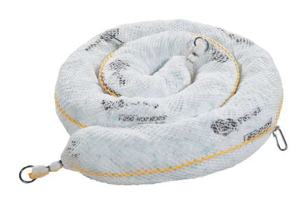 Description Product Type Sorbent Boom, Fluids Absorbed Oil Based Liquids, For Use With Chemical or Metal Type Fuels, Oil-Based Liquids, Oils, Size 5 in x 10 ft, Volume Absorbed Per Sock/Boom 6 gal, Volume Absorbed per Pkg. 24 gal, Color/Pattern White, Filler Material Polypropylene, Outer Mesh Material Polyester, Outside Skin Material Polypropylene, Sock/Boom Profile Round, Package Quantity 4