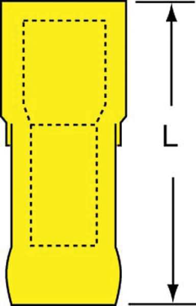 Description Female Disconnect, Insulation Color Yellow, Standards CSA Certified, RoHS Compliant, UL Listed, Insulation Type Vinyl, Overall Length 0.95 in, Package Quantity 25