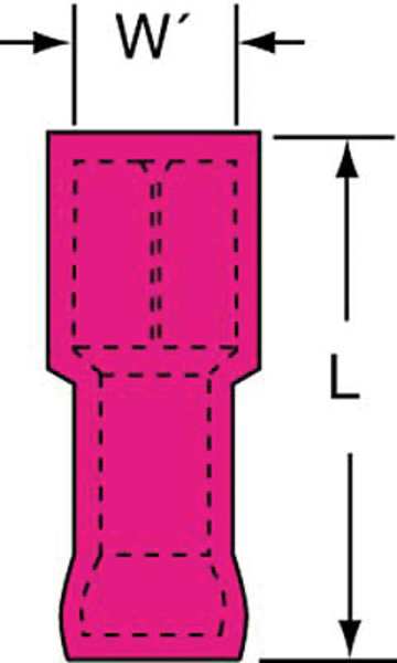 Description Female Disconnect, Insulation Color Red, Terminal Type Disconnect, Standards CSA Certified, RoHS Compliant, UL Listed, Insulation Type Nylon, Overall Length 0.81 in, Package Quantity 1000