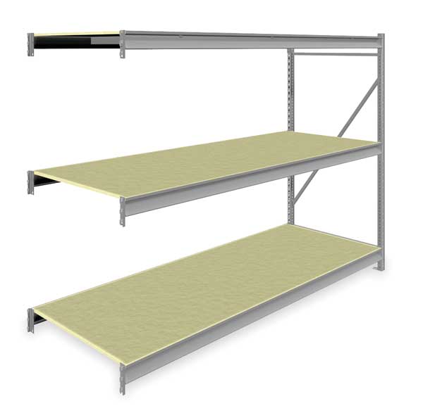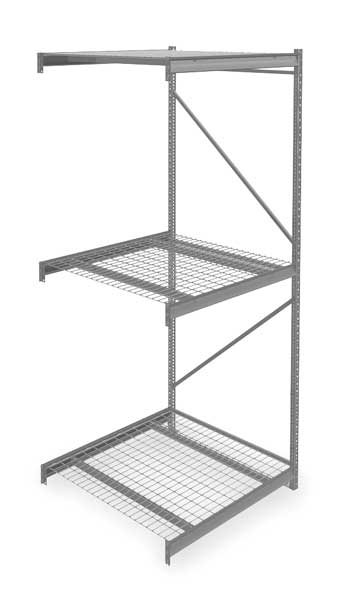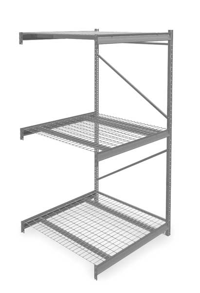 $831.24 / eachWeb priceAdd-On Bulk Storage Rack, 36 in D, 96 in W, 3 ShelvesSKU G1696904CategoriesDescription Bulk Storage Rack, Shelving Type Add-On, Overall Width 96 in, Overall Depth 36 in, Overall Height 96 in, Decking Material Steel, No. of Shelves 3, Shelf Capacity 2150 lb, Load Capacity 6,450 lb, Shelving Frame Material Steel, Gray, Finish - Shelving and Racks Powder Coated, Shelf Adjustments 2 in, For Use With Tennesco Bulk Storage and Boltless Racks, Includes (3) Shelves, End FramegraingerSKU: 7B142, mscSKU: , zoro_no: G1696904, mongo_id: 65bbe8c922d7a989a991514d
