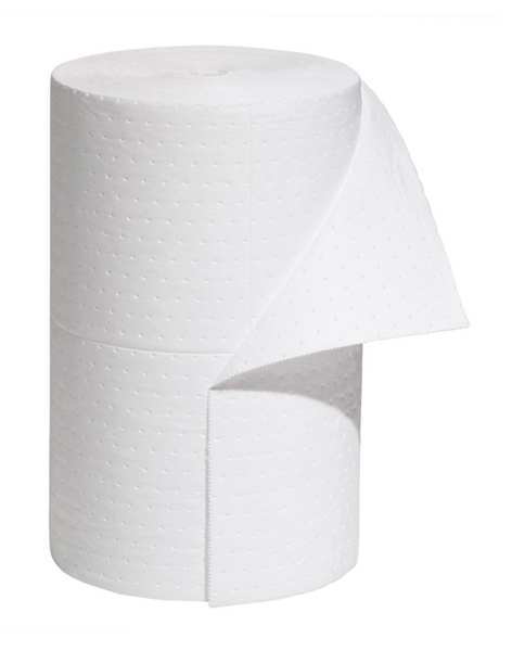 Description Product Type Sorbent Roll, Fluids Absorbed Oil-Only, For Use With Chemical or Metal Type Oil Only, Size 30 in x 150 ft, Volume Absorbed Per Pad 32 gal, Volume Absorbed per Pkg. 32 gal, Volume Absorbed Per Pound 70 gal, Color/Pattern White, Material Polypropylene, Number of Layers 8-ply, Perforated Yes, Perforated Size 10 inx15 in