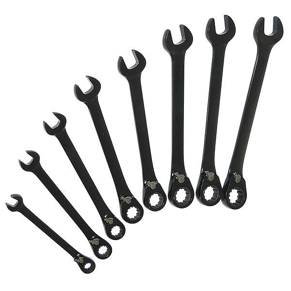 $168.74 / eachWeb priceRatcheting Wrench Set, CombinationSKU G5093401CategoriesDescription Ratcheting Wrench Set, Alloy Steel, Black Chrome, Number of Tools 8, Range of Head Sizes 5/16 in to 3/4 in, Head Offset Angle 15 Degrees , Offset, Tool Roll, SAE, 5/16 in, 3/8 in, 7/16 in, 1/2 in, 9/16 in, 5/8 in, 11/16 in, 3/4 in, Rounded, Opening Angle (Deg.) 15 DegreesgraingerSKU: , mscSKU: , zoro_no: G5093401, mongo_id: 65bbe5d03aaddbd5a9fe9b05