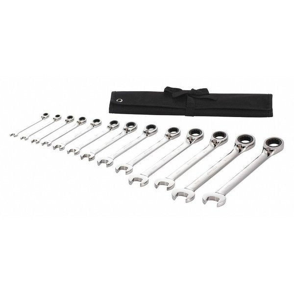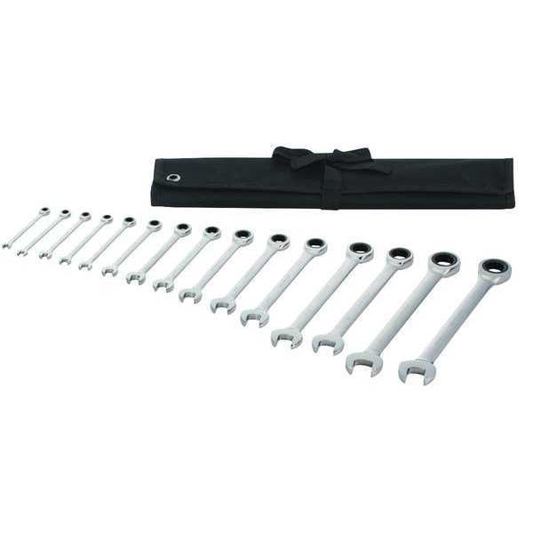 Ratcheting Wrench Set, Metric, 8 mm to 25 mm Head Sizes, 12 Points, 15-Piece
