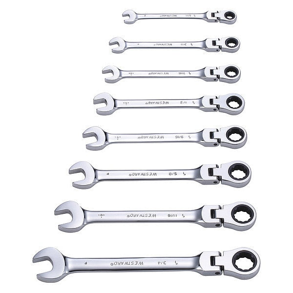 SKU G1230074CategoriesDescription Combination Wrench Set, Alloy Steel, Chrome, Number of Tools 8, Range of Head Sizes 5/16 in to 3/4 in, Head Offset Angle 0 Degrees , Standard, Storage Rack, SAE, 5/16 in, 3/8 in, 7/16 in, 1/2 in, 9/16 in, 5/8 in, 11/16 in, 3/4 in, Rounded, Opening Angle (Deg.) 15 Degrees$128.74 / eachWeb priceRatcheting Wrench Set, Pieces 8SKU G1230074CategoriesDescription Combination Wrench Set, Alloy Steel, Chrome, Number of Tools 8, Range of Head Sizes 5/16 in to 3/4 in, Head Offset Angle 0 Degrees , Standard, Storage Rack, SAE, 5/16 in, 3/8 in, 7/16 in, 1/2 in, 9/16 in, 5/8 in, 11/16 in, 3/4 in, Rounded, Opening Angle (Deg.) 15 Degrees$128.74 / eachWeb price -