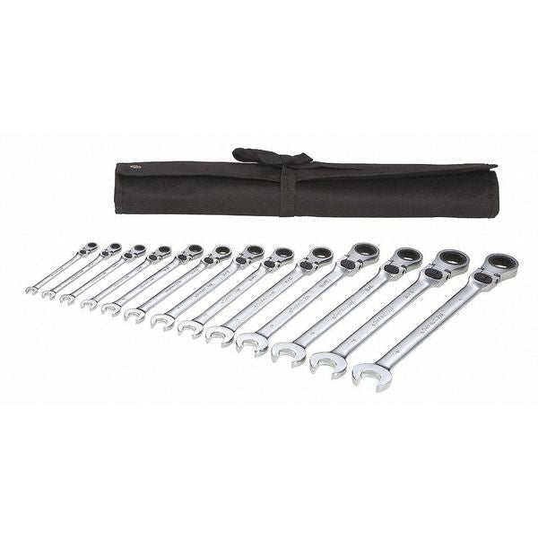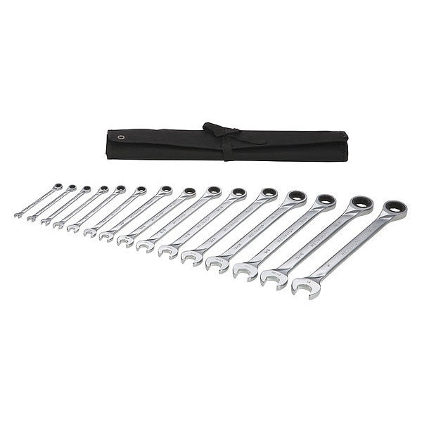 Ratcheting Wrench Set, SAE, 1/4 in to 1 in Head Sizes, 15-Piece