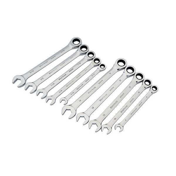 SKU G2474157CategoriesDescription Combination Wrench Set, Alloy Steel, Full Polish, Number of Tools 10, Range of Head Sizes 5/16 in to 9/16 in, 8 mm to 14 mm, Head Offset Angle 0 Degrees , Standard, Tool Roll, SAE/Metric, 5/16 in, 8 mm, 3/8 in, 10 mm, 7/16 in, 12 mm, 1/2 in, 13 mm, 14 mm, 9/16 in, Hex, Opening Angle (Deg.) 15 Degrees$138.74 / eachWeb priceRatcheting Wrench Set, Pieces 10SKU G2474157CategoriesDescription Combination Wrench Set, Alloy Steel, Full Polish, Number of Tools 10, Range of Head Sizes 5/16 in to 9/16 in, 8 mm to 14 mm, Head Offset Angle 0 Degrees , Standard, Tool Roll, SAE/Metric, 5/16 in, 8 mm, 3/8 in, 10 mm, 7/16 in, 12 mm, 1/2 in, 13 mm, 14 mm, 9/16 in, Hex, Opening Angle (Deg.) 15 Degrees$138.74 / eachWeb price -