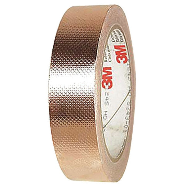 SKU G8704832Categories Adhesives, Epoxy & SealantsDescription Conductive Electrical Tape, Tape Backing Material Copper, 1 in, 54 ft, Tape Color Copper, Tape Sub-Type General Purpose Foil, Tape Adhesive Material Acrylic, 2.6 mil, 3M(TM), 1181, Minimum Tape Performance Temperature -40 Degrees F, Maximum Tape Performance Temperature 266 Degrees F, Voltage Rating 600 V, Shielding Effectiveness Excellent (Over 85dB), Liner Included Yes, Product Form Continuous Roll, Tape Adhesive Format Single-Sided, Package Quantity 9graingerSKU: 2GCA5, mscSKU: , zoro_no: G8704832, mongo_id: 65bbe9d422d7a989a997db7c