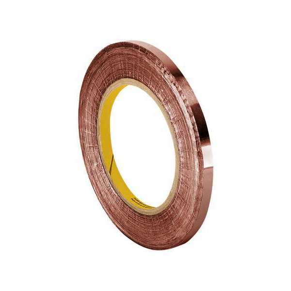 SKU G3960135Categories Adhesives, Epoxy & SealantsDescription Conductive Electrical Tape, Tape Backing Material Copper, 1/2 in, 18 ft, Tape Color Copper, Tape Sub-Type General Purpose Foil, Tape Adhesive Material Acrylic, 2.6 mil, 3M(TM), 1181, Minimum Tape Performance Temperature -40 Degrees F, Maximum Tape Performance Temperature 266 Degrees F, Voltage Rating 600 V, Shielding Effectiveness Fair (50 to 70dB), Liner Included Yes, Product Form Continuous Roll, Tape Adhesive Format Single-SidedgraingerSKU: 2JPR6, mscSKU: , zoro_no: G3960135, mongo_id: 65bbe8339a749db82277c024