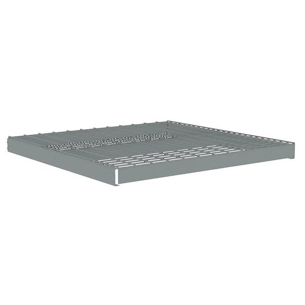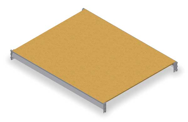 Description Shelf, Gray, Particleboard, Unfinished Decking Finish, Single Straight, Zinc Plated, Frame Material Steel, Overall Height 4 9/16 in, Overall Width 48 in, Overall Depth 42 in, Load Capacity 2,500 lb, Includes (4) Beams