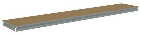 Description Shelf, Gray, Particleboard, Unfinished Decking Finish, Single Straight, Zinc Plated, Frame Material Steel, Overall Height 2 1/4 in, Overall Width 60 in, Overall Depth 15 in, Load Capacity 750 lb, Includes (4) Beams