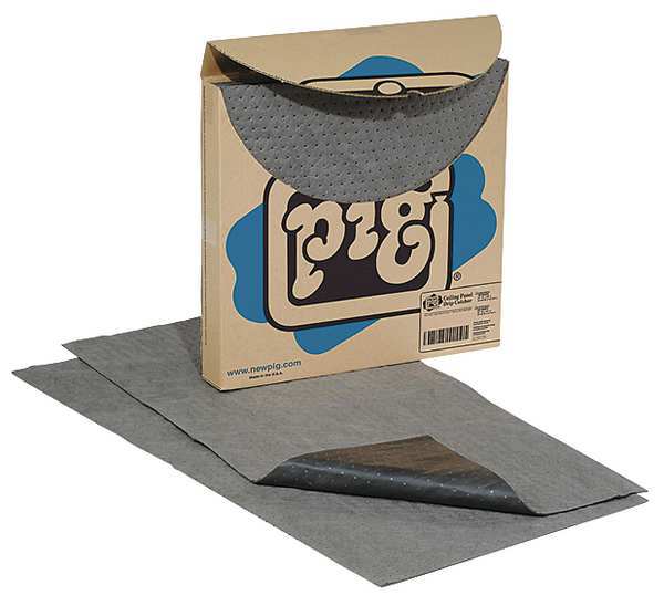 Description Product Type Ceiling Tile Sorbent Pad, Fluids Absorbed Universal, For Use With Chemical or Metal Type Universal, Size 23 in x 48 in, Volume Absorbed Per Pad 75 oz, Volume Absorbed per Pkg. 6 gal, Volume Absorbed Per Pound 13 gal, Color/Pattern Gray, Material Polypropylene, Number of Layers 8-ply, Perforated No, Perforated Size Not Perforated, Package Quantity 10