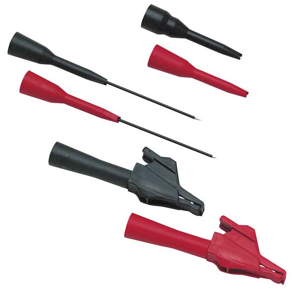 SKU G2240883CategoriesDescription Test Leads, Color Code Black, Red, For Use With Digital Multimeter, mA Loop Calibrators, Length 5 ft, Maximum Voltage 30 V, Number of Test Leads 2, Instrument Safety Rating CAT I 30V, Maximum Current 10 A, Meter Connection Type Right Angle Plug, Features Large Piercing Needle for Penetrating Larger Gauge Wires Located Inside the Jaws, Manufacturers Warranty Length 1 yr, Wire Insulation Silicone, Standards EAR99, Test End Termination Alligator Clip, Includes Test LeadgraingerSKU: , mscSKU: , zoro_no: G2240883, mongo_id: 65bbe6683aaddbd5a902acf2