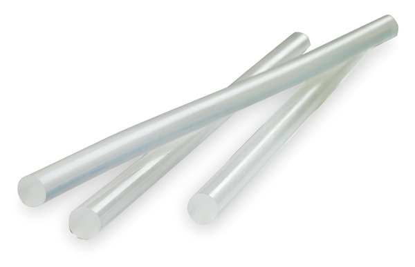 Hot Melt Adhesive, Clear, 1/2 in Diameter, 12 in Length, 50 sec Begins to Harden