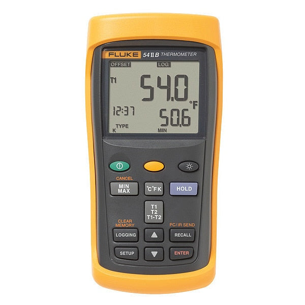 Description Thermocouple Thermometer, Thermocouple, Includes NIST-Traceable Certificate Yes, Accuracy +/-0.05 Percent + 0.3 Degrees C, -150 Degrees to 1,000 Degrees C (Type E), -200 Degrees to 1,300 Degrees C (Type N), -200 Degrees to 1,372 Degrees C (Type K), -210 Degrees to 1,200 Degrees C (Type J), -250 Degrees to 400 Degrees C (Type T), 0 Degrees to 1,767 Degrees C (Type R, S), (3) AA, Backlit LCD, 0 Percent to 70 Percent, 0 Percent to 90 Percent, 0 Degrees C to 35 Degrees C, 0 Degrees C to 50 Degrees C