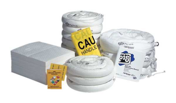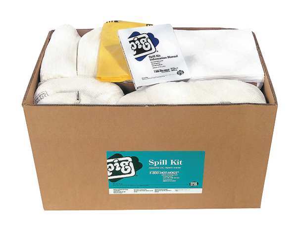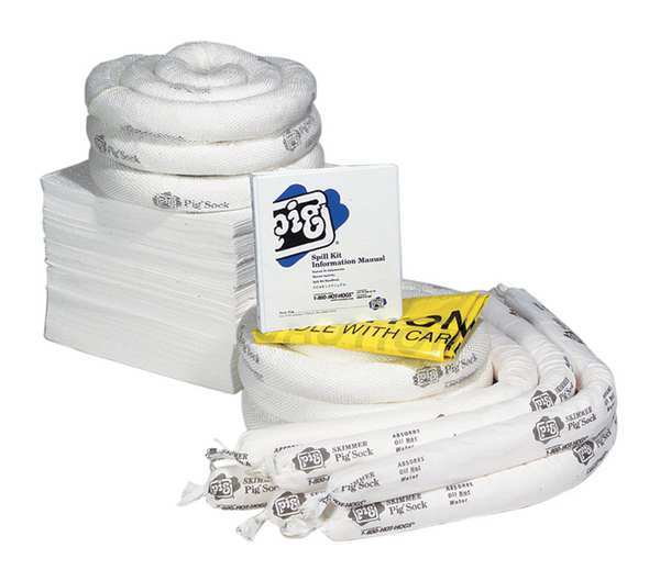 SKU G8298473CategoriesDescription Spill Kit Refill, Fluids Absorbed Oil-Only, Volume Absorbed Per Kit 15 gal, Container Type Box, 24 1/4 in W x 24 3/5 in L x 11 in H Container Size, White, Filled, Sorbents Included (4) 12 in W x 12 in L x 1 in H Pig Skimmer Oil-Only Absorbent Pillow (PIL405), (5) Ext. dia 3 in x 48 in L Pig Skimmer Oil-Only Absorbent Sock (104PS), 15 in W x 60 ft L Pig Rip-and-Fit Oil-Only Absorbent Mat Roll in Dispenser Box (MAT442)graingerSKU: 30RE43, mscSKU: , zoro_no: G8298473, mongo_id: 65bbea3b22d7a989a99a2394