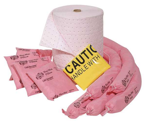 $1,707.50 / eachWeb priceSpill Kit Refill, Chem/Hazmat, PinkSKU G8271313CategoriesDescription Spill Kit Refill, Fluids Absorbed Acids, Bases, Volume Absorbed Per Kit 63 gal, Container Type Box, 22 in W x 22 in L x 20 in H Container Size, Pink, Filled, Sorbents Included (12) 3 in D x 46 in L Absorbent Chemical Sock (124CR), (2) Ext. dia. 5 in x 10 ft L Pig HazMat Chemical Absorbent Dike (HA1010), (6) 3 in D x 10 ft L Absorbent Chemical Sock (Pig301), (7) 17 in W x 16 in L x 2 in H Harsh Chemical Absorbent Pillow (HR7015), (75) 15 in W x 20 in L Absorbent Mat Pad (MAT301)graingerSKU: 30RF08, mscSKU: , zoro_no: G8271313, mongo_id: 65bbe8479a749db822783d54